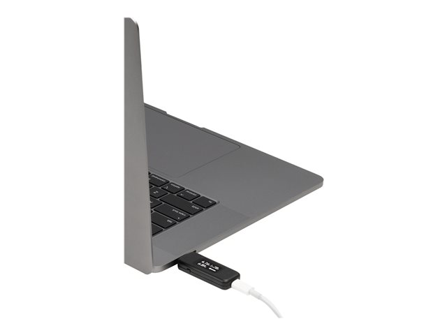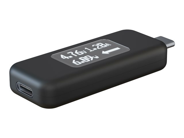For a multimeter, the Plugable USB-C Amperage and Voltage Tester (USBC-VAMETER) manages to fit a lot of useful features into a sturdy little package. About the size of a USB flash drive, this bidirectional USB tester allows for full USB data passthrough while it monitors USB-C power and charging, measures voltage and amperage, even visualizes the directional flow of electrical current - all in real time. Connect the VAMETER inline between a USB-C host system like a laptop, tablet, or cell phone and a charger to use it as a USB voltage meter or power consumption meter. An updated OLED screen means a brighter and easier-to-read display in any lighting conditions, and a new orientation button lets you flip the screen with a click.