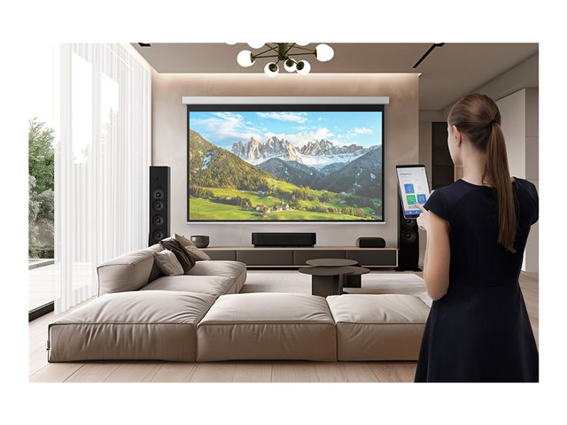 The Epson EH-QS100B is designed to elevate presentations and multimedia experiences with its impressive specifications and features. With a brightness of 4500 lumens and a contrast ratio of 1800:1, this digital projector ensures vibrant and clear visuals, making it suitable for a variety of settings. The 4K enhancement capability and support for HDR10 further enhance the image quality, allowing users to enjoy stunning detail and colors, supporting 1.07 billion colors for a more immersive experience. Its native resolution of 3840 x 2160 ensures crystal-clear images for both professional and personal use. Moreover, the Epson EH-QS100B is equipped with a wide range of connectivity options, including HDMI, HDBaseT, and network capabilities, enabling easy integration into different setups. The ultra short-throw lens allows for flexible installation without compromising on image size, projecting images from 152.4 cm to 406.4 cm with minimal throw distance, making it perfect for smaller spaces. With support for various projector features, including frame interpolation and auto source detection, this projector is designed to provide a seamless and user-friendly experience.
